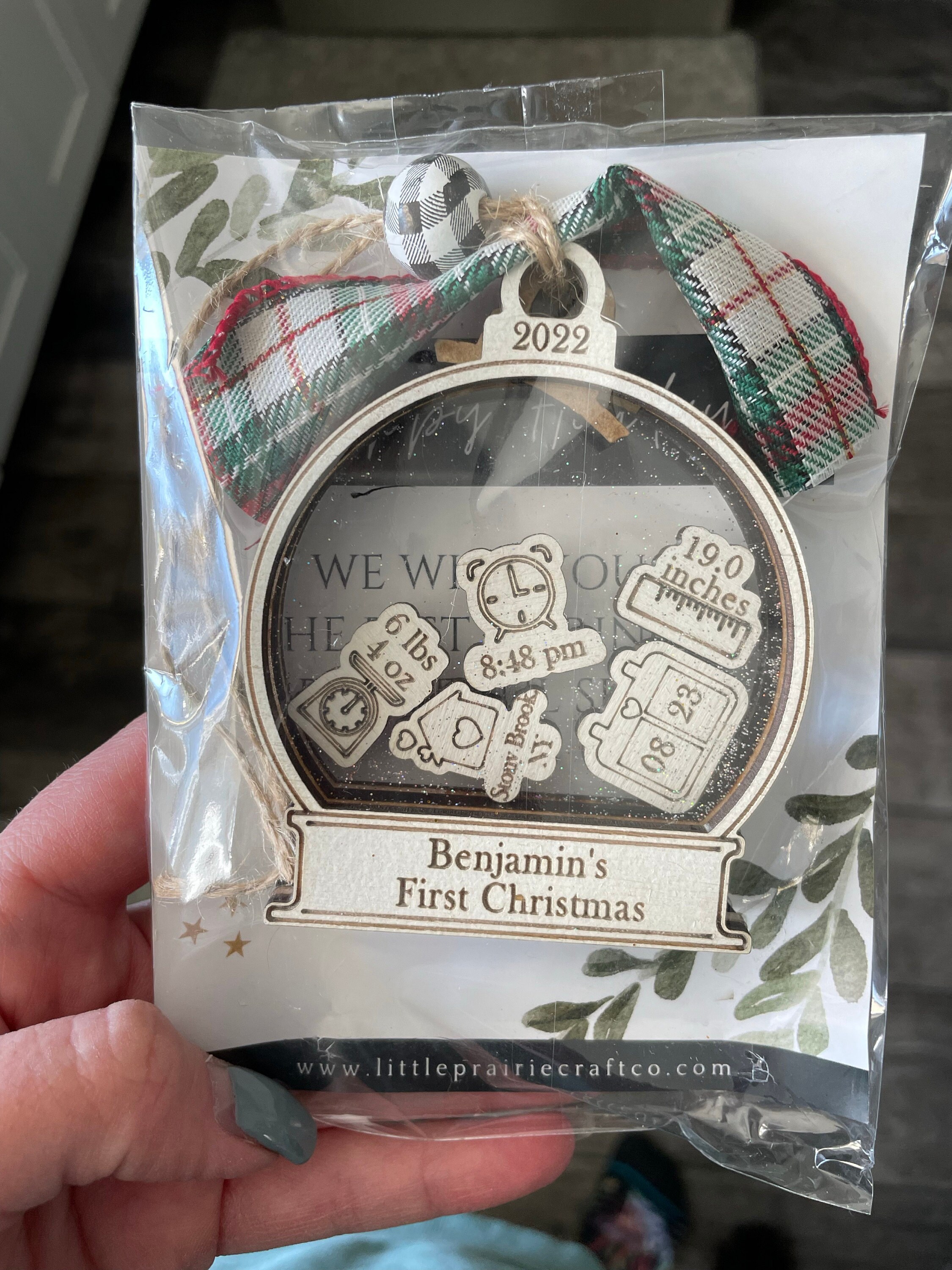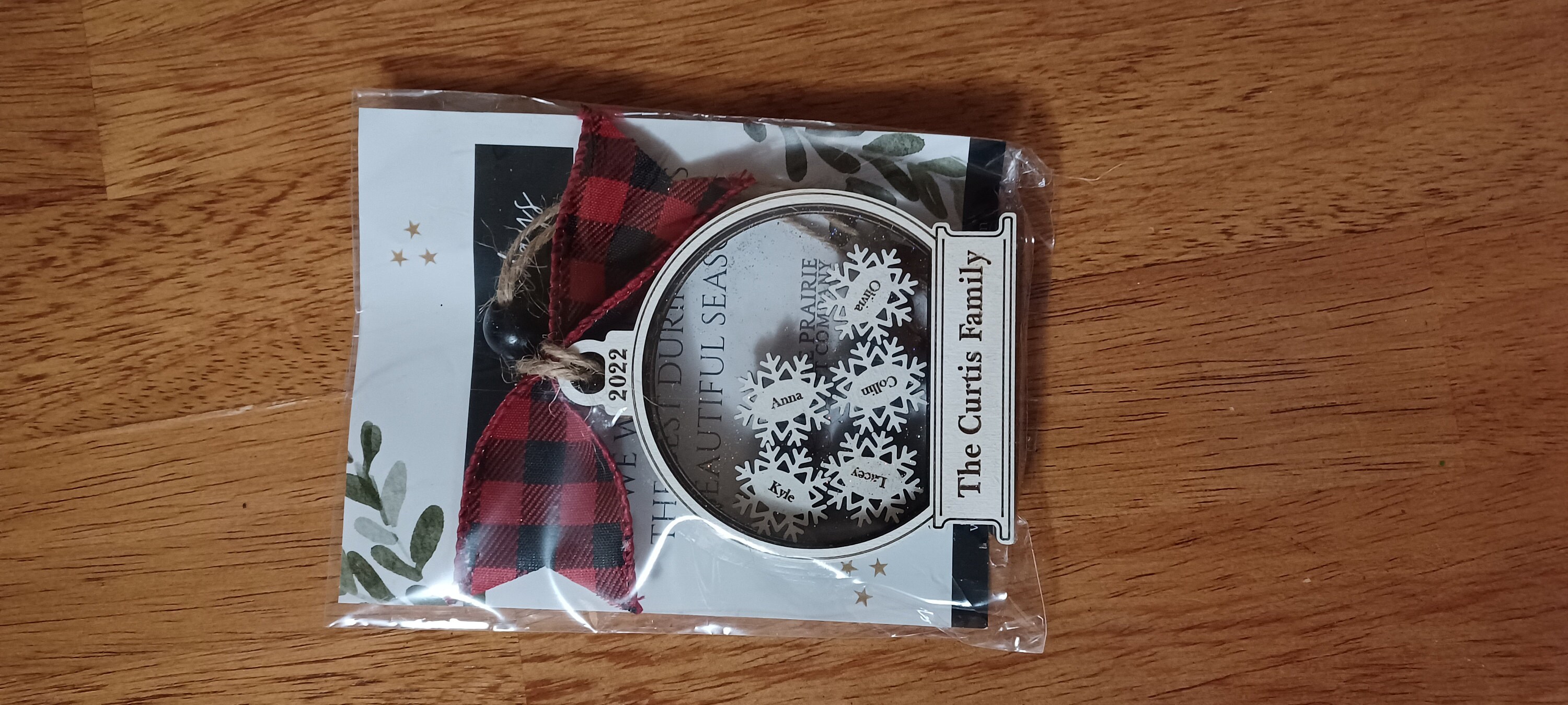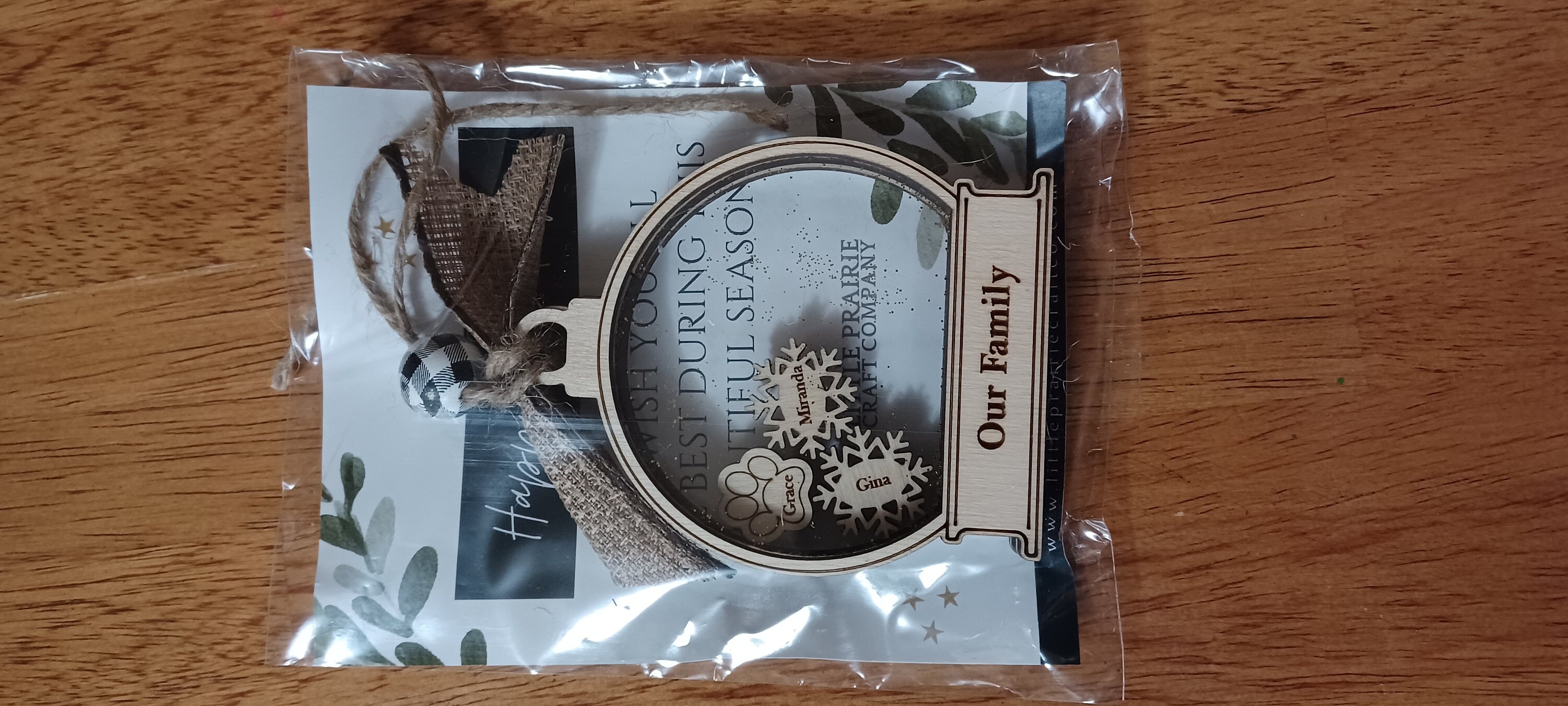 Adorable personalized and beautifully-made ornament, which is a belated Christmas gift for a dear friend and grandmother of 7! There was an unfortunate shipping snafu that resulted in having to re-order the ornament for delivery after the holidays, but the 2nd time around, Ashley offered a very nice 15% discount and it arrived to from Canada within two weeks, which is pretty amazing given the slow mail delivery with our neighbors to the north! I preferred a more neutral ribbon and bead color than the silver/red plaid it came with but it was easy to swap out using a stronger piece of jute. The ornament came with a thoughtful packet of wildflower seeds embedded in cute biodegradable cut-out shapes to offset global shipping, which is such a lovely environmentally- friendly thing to do! Highly recommend!!